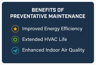 AdvantagesBenefits of Preventative MaintenanceExtended Equipment LifespanImproved Energy EfficiencyFewer Unexpected BreakdownsWhat does Preventative Maintenance Include?